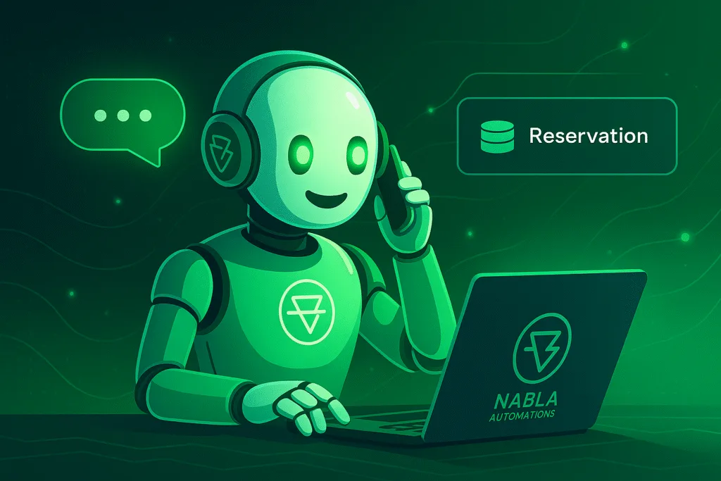 Agente telefónico para restaurantes o peluquerías que recibe llamadas, reserva mesas, confirma asistencia por e-mail y WhatsApp. Completamente adaptable a otros negocios y secotres.